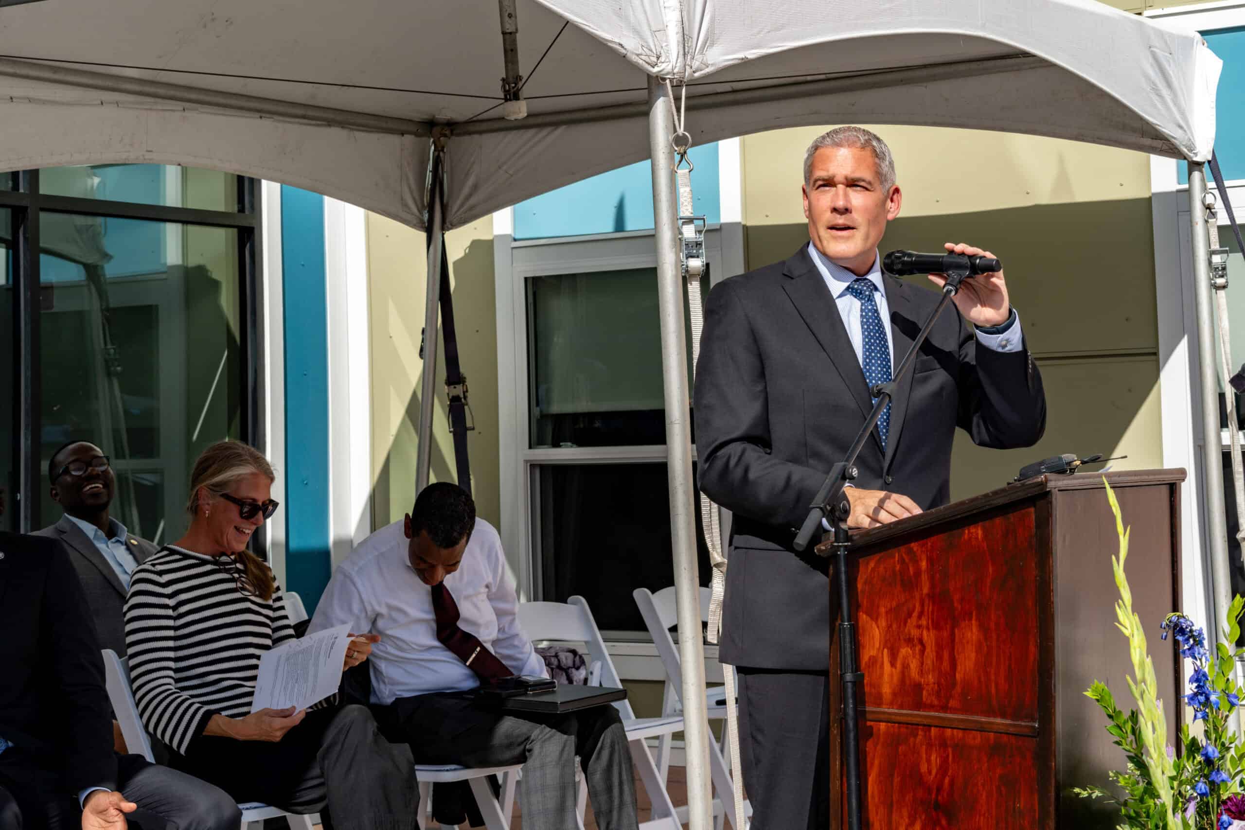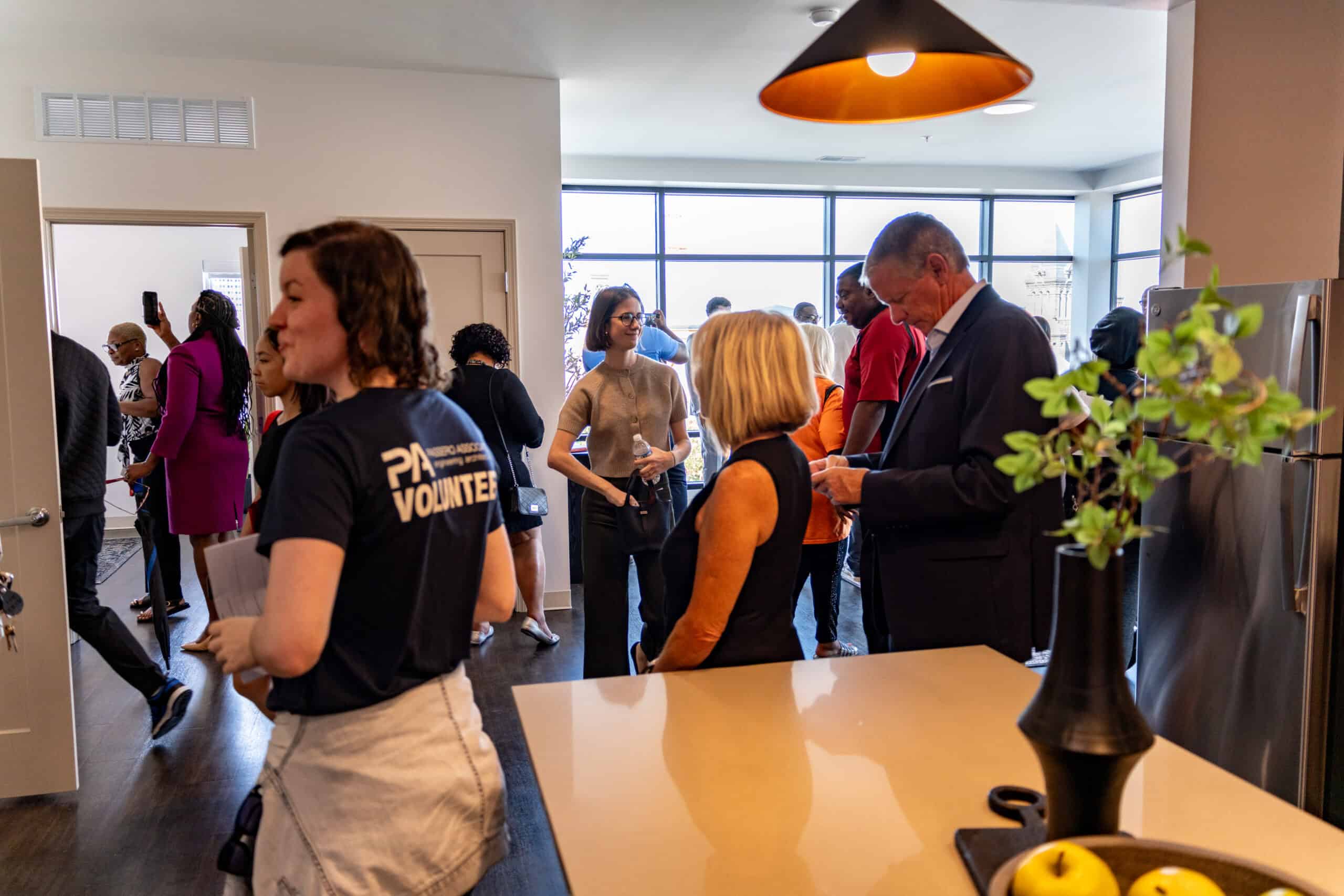 The cutting of the ribbon signified the opening of this 164-unit complex. Totaling more than 174 thousand square feet and standing 5 stories tall, Center City is a significant addition to the downtown landscape. Residents of Center City Courtyard have access to many amenities including community and fitness rooms, a rooftop lounge, onsite supportive services and more. A mix of studio, one- and two-bedroom apartments provide flexibility for residents seeking a place to call home. 95 of the 164 units are reserved for individuals or families at risk of or currently experiencing homelessness.